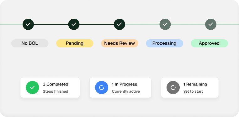View assigned trips, upload BOLs quickly, and get clear feedback if something needs to be resubmitted.
